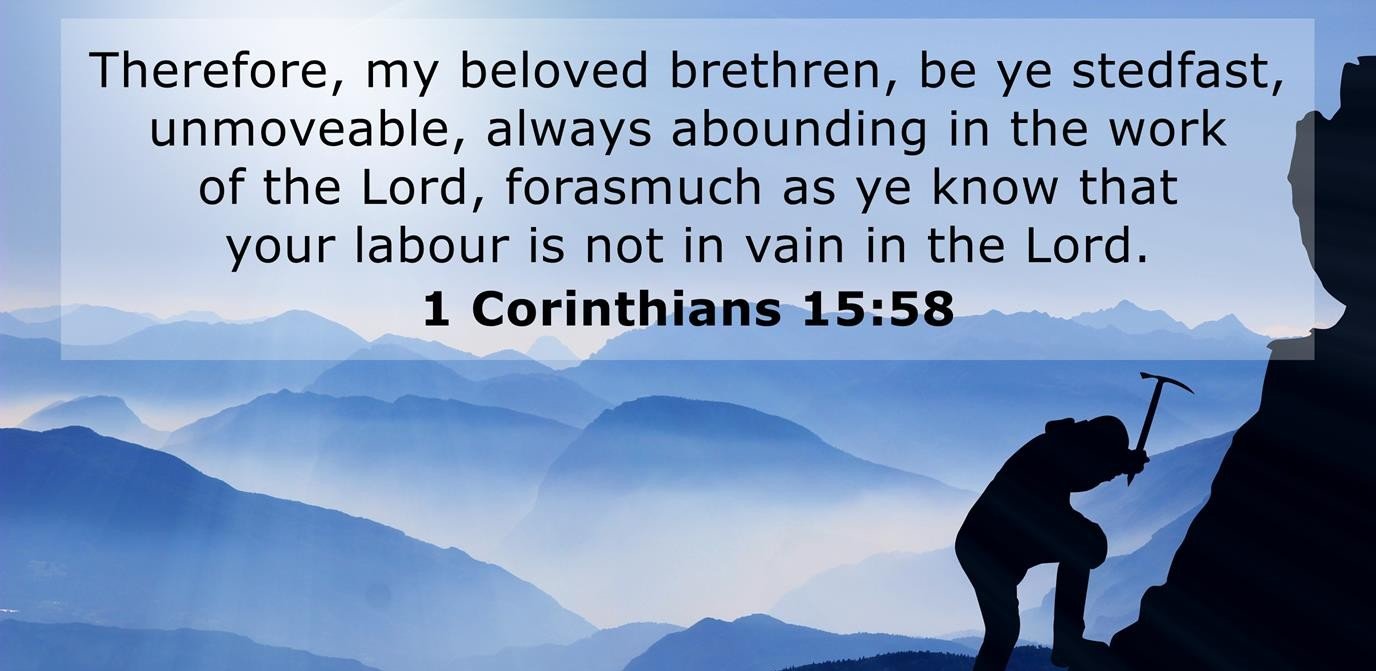 “Therefore, my beloved brothers, be steadfast, immovable, always abounding in the work of the Lord, knowing that in the Lord your labor is not in vain.” (1 Corinthians 15:58, ESV)
