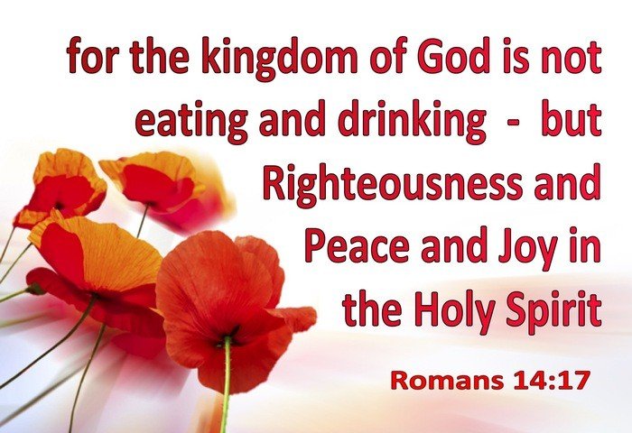 “For the kingdom of God is not meat and drink; but righteousness, and peace, and joy in the Holy Ghost.” — Romans 14:17