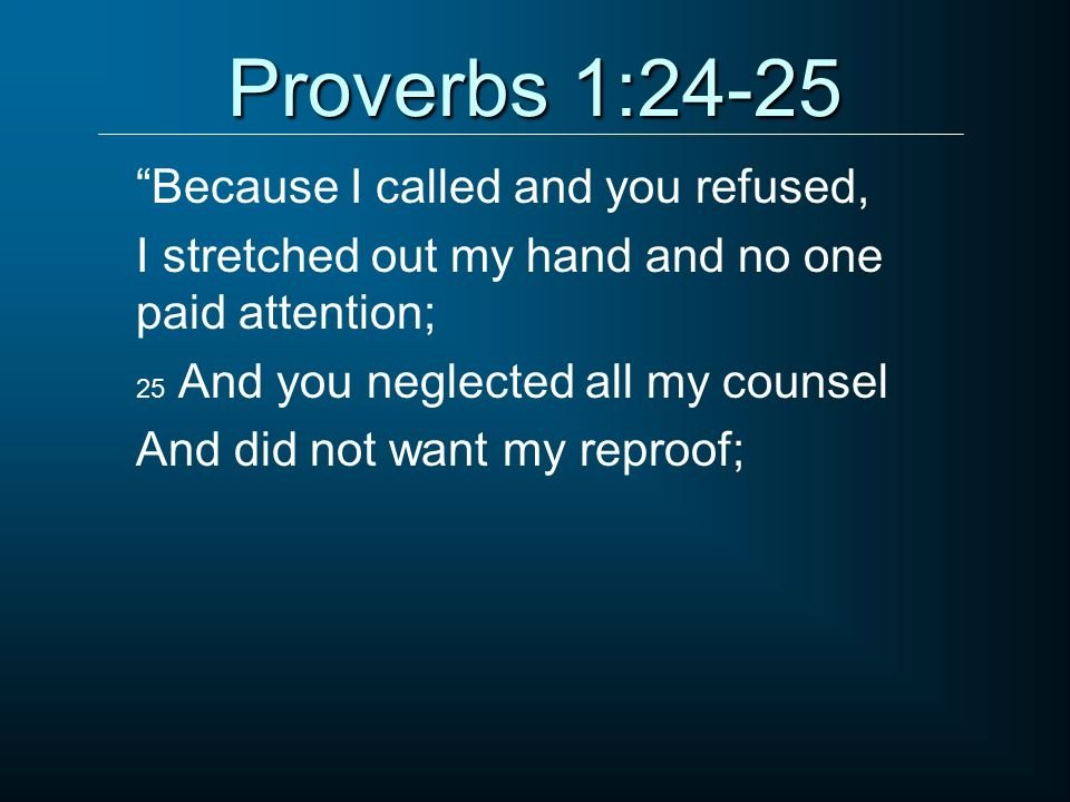 "Because I have called and you refused to listen, have stretched out my hand and no one has heeded… they shall eat the fruit of their way, and have their fill of their own devices." — Proverbs 1:24, 31