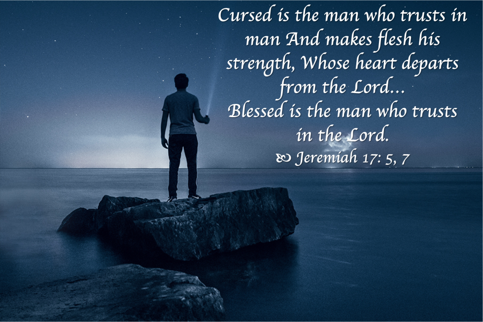 “Thus saith the Lord; Cursed be the man that trusteth in man, and maketh flesh his arm, and whose heart departeth from the Lord.” (Jeremiah 17:5, KJV)