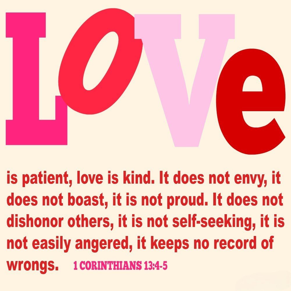 “Love is patient, love is kind. It does not envy, it does not boast, it is not proud. It does not dishonor others, it is not self-seeking, it is not easily angered, it keeps no record of wrongs.” — 1 Corinthians 13:4–5