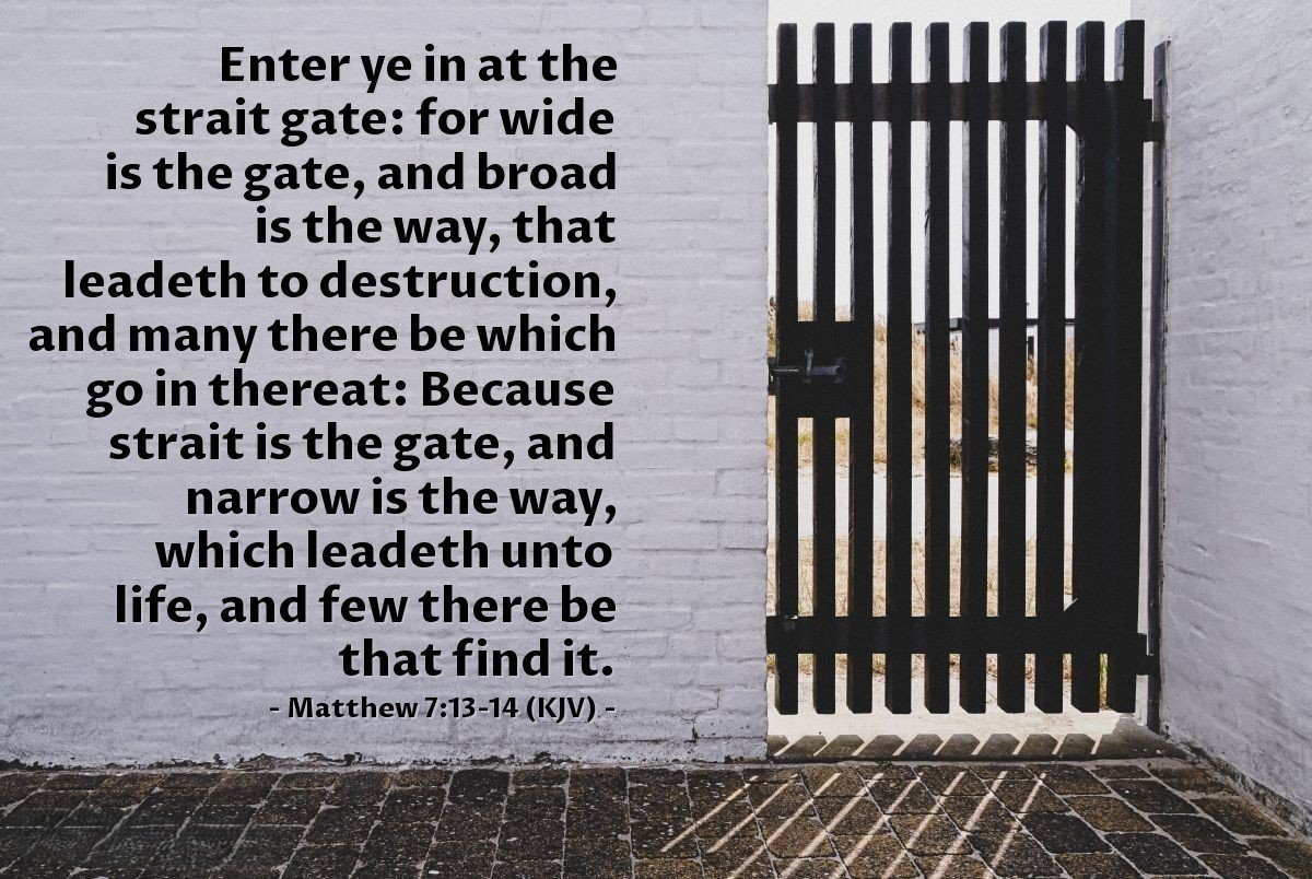 Key Scripture: “Enter by the narrow gate; for wide is the gate and broad is the way that leads to destruction… because narrow is the gate and difficult is the way which leads to life, and there are few who find it.” (Matthew 7:13–14)