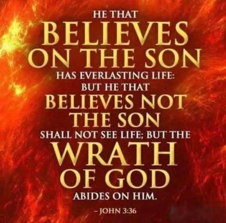 “He that believeth on the Son hath everlasting life: and he that believeth not the Son shall not see life; but the wrath of God abideth on him.” — John 3:36