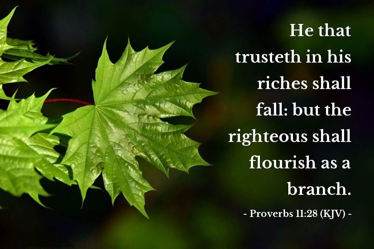 "He that trusteth in his riches shall fall: but the righteous shall flourish as a branch." — Proverbs 11:28