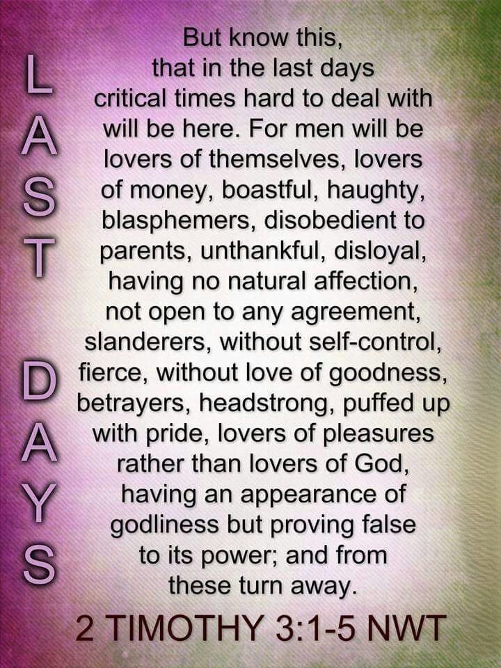 "This know also, that in the last days perilous times shall come. For men shall be lovers of their own selves...boasters, proud..." — 2 Timothy 3:1-2 (KJV)
