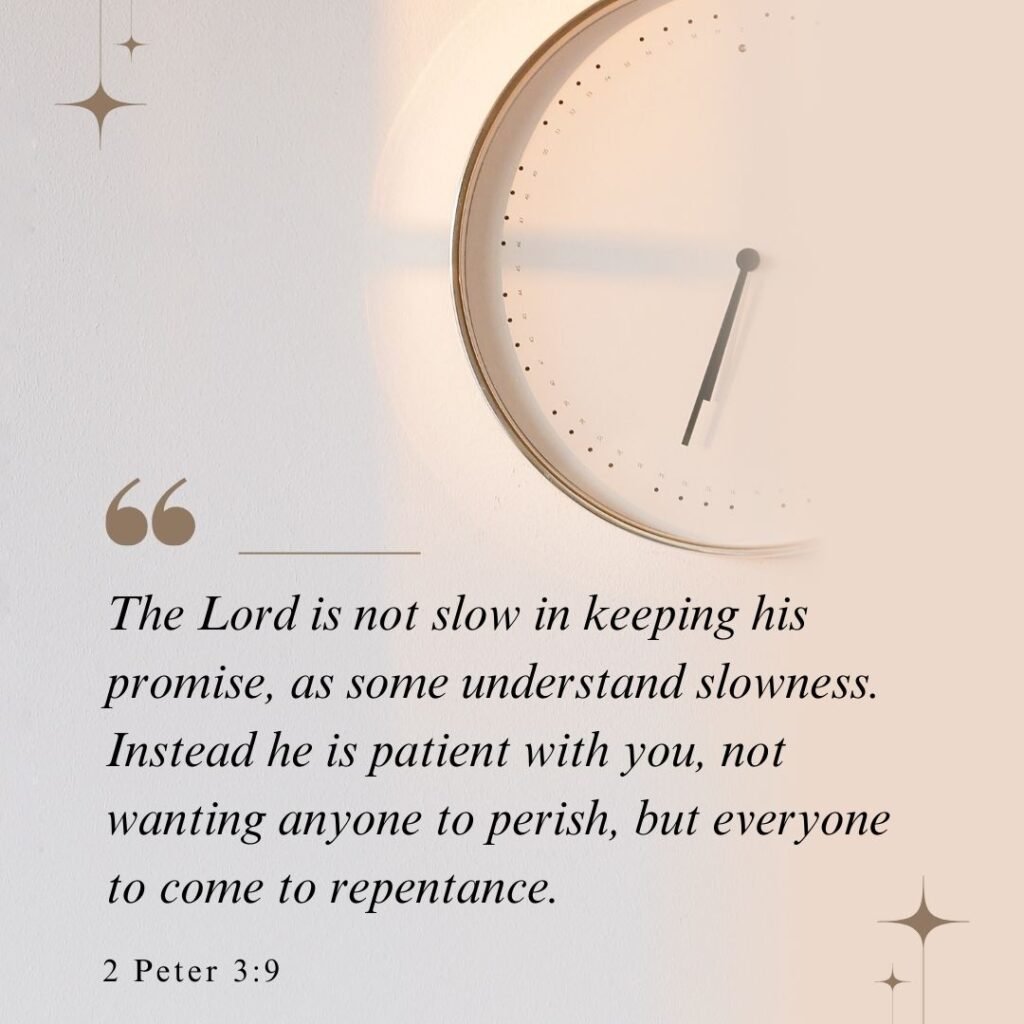 “The Lord is not slow in keeping his promise, as some understand slowness. Instead he is patient with you, not wanting anyone to perish, but everyone to come to repentance.”