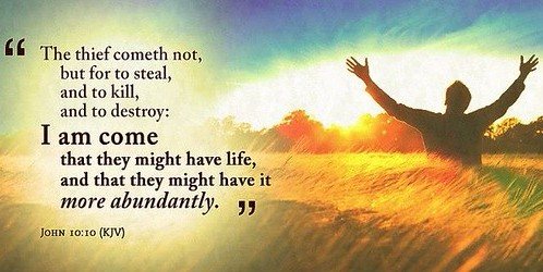 John 10:10 (KJV): The thief cometh not, but for to steal, and to kill, and to destroy: I am come that they might have life, and that they might have it more abundantly.
