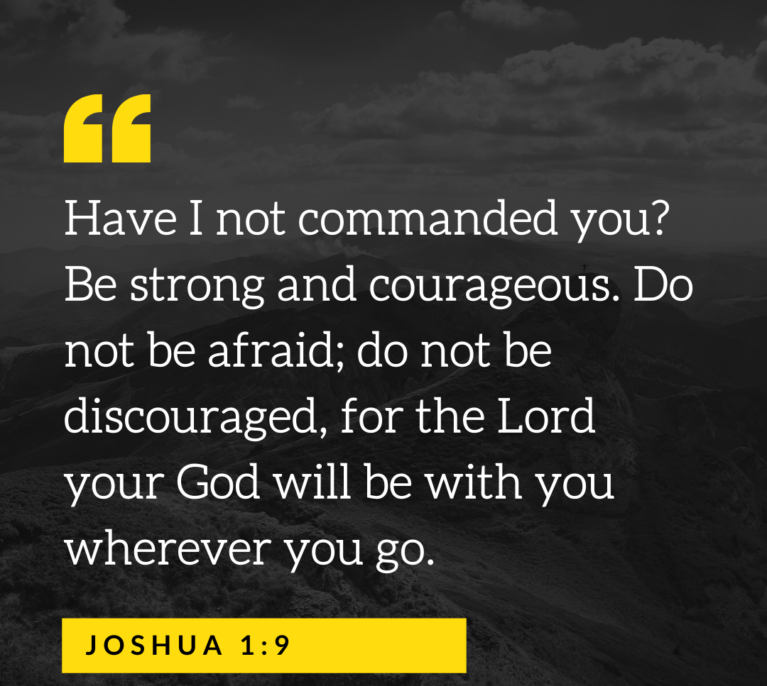 Joshua 1:9 (KJV): Have not I commanded thee? Be strong and of a good courage; be not afraid, neither be thou dismayed: for the Lord thy God is with thee whithersoever thou goest.