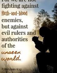 Ephesians 6:12 (KJV): For we wrestle not against flesh and blood, but against principalities, against powers, against the rulers of the darkness of this world, against spiritual wickedness in high places.
