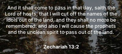 “And it shall come to pass in that day, saith the LORD of hosts, that I will cut off the names of the idols out of the land, and they shall no more be remembered: and also I will cause the prophets and the unclean spirit to pass out of the land.”