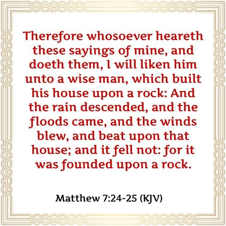 “Therefore whosoever heareth these sayings of mine, and doeth them, I will liken him unto a wise man… And the rain descended, and the floods came, and the winds blew… and it fell not: for it was founded upon a rock.” — Matthew 7:24–25