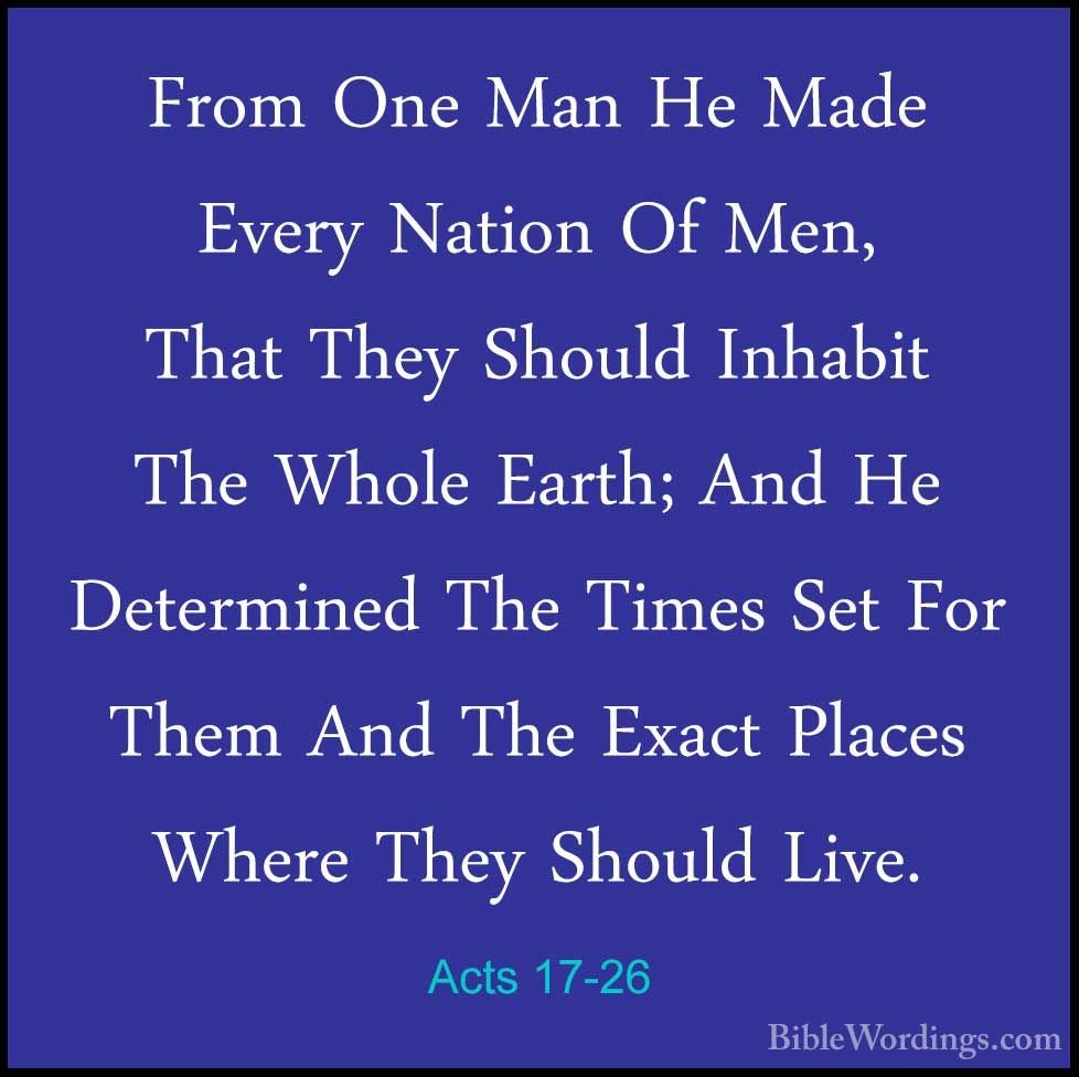 “And he hath made of one blood all nations of men for to dwell on all the face of the earth.” — Acts 17:26