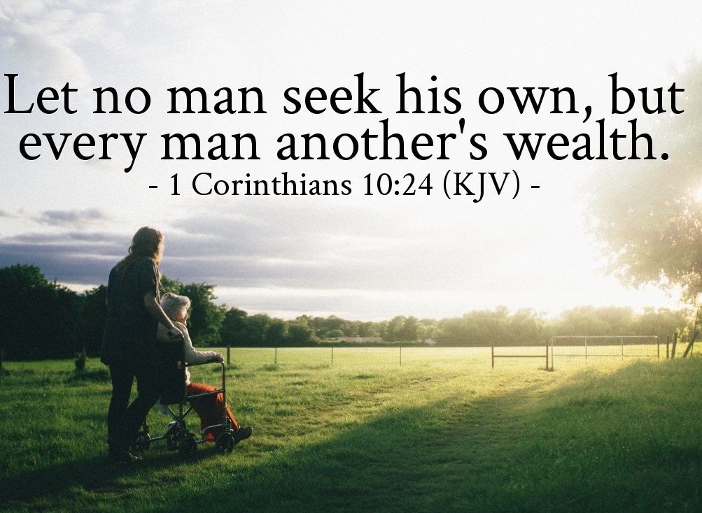 “Let no man seek his own, but every man another’s wealth.” — 1 Corinthians 10:24