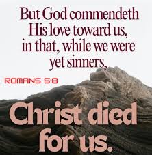 "But God commendeth his love toward us, in that, while we were yet sinners, Christ died for us."