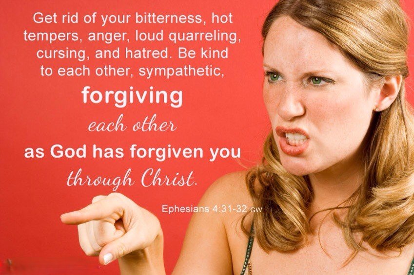 "Let all bitterness, and wrath, and anger, and clamour, and evil speaking, be put away from you, with all malice: And be ye kind one to another, tenderhearted, forgiving one another, even as God for Christ's sake hath forgiven you."