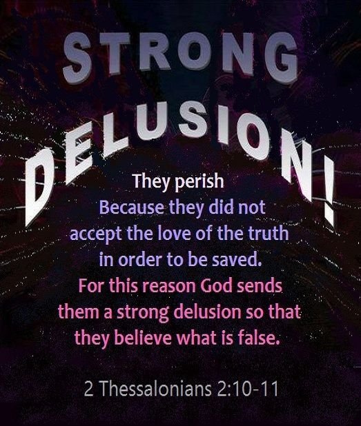 "And with all deceivableness of unrighteousness in them that perish; because they received not the love of the truth, that they might be saved. And for this cause God shall send them strong delusion, that they should believe a lie."