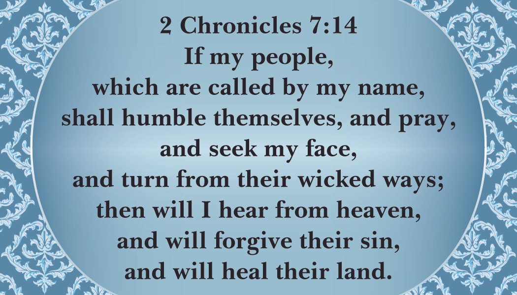 "If my people, which are called by my name, shall humble themselves, and pray, and seek my face, and turn from their wicked ways; then will I hear from heaven, and will forgive their sin, and will heal their land."