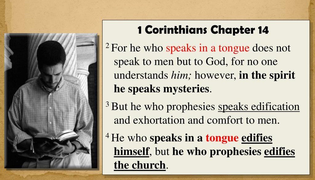1 Corinthians 14:2 - “For he who speaks in a tongue does not speak to men but to God, for no one understands him; however, in the spirit he speaks mysteries.”