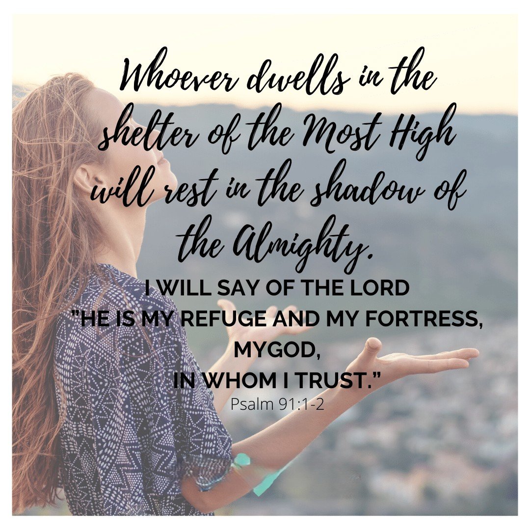"Whoever dwells in the shelter of the Most High will rest in the shadow of the Almighty. I will say of the Lord, 'He is my refuge and my fortress, my God, in whom I trust.'"