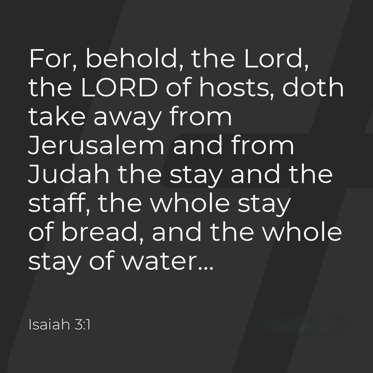 Isaiah 3:1 – "For, behold, the Lord, the Lord of hosts, doth take away from Jerusalem and from Judah the stay and the staff, the whole stay of bread, and the whole stay of water."
