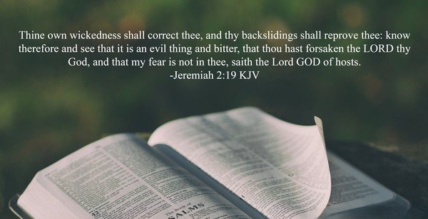 Jeremiah 2:19 – "Thine own wickedness shall correct thee, and thy backslidings shall reprove thee: know therefore and see that it is an evil thing and bitter, that thou hast forsaken the Lord thy God."
