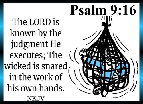 "The Lord is known by the judgment which he executeth: the wicked is snared in the work of his own hands." – Psalm 9:16
