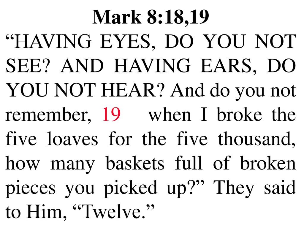 "Having eyes, see ye not? And having ears, hear ye not? And do ye not remember?" – Mark 8:18