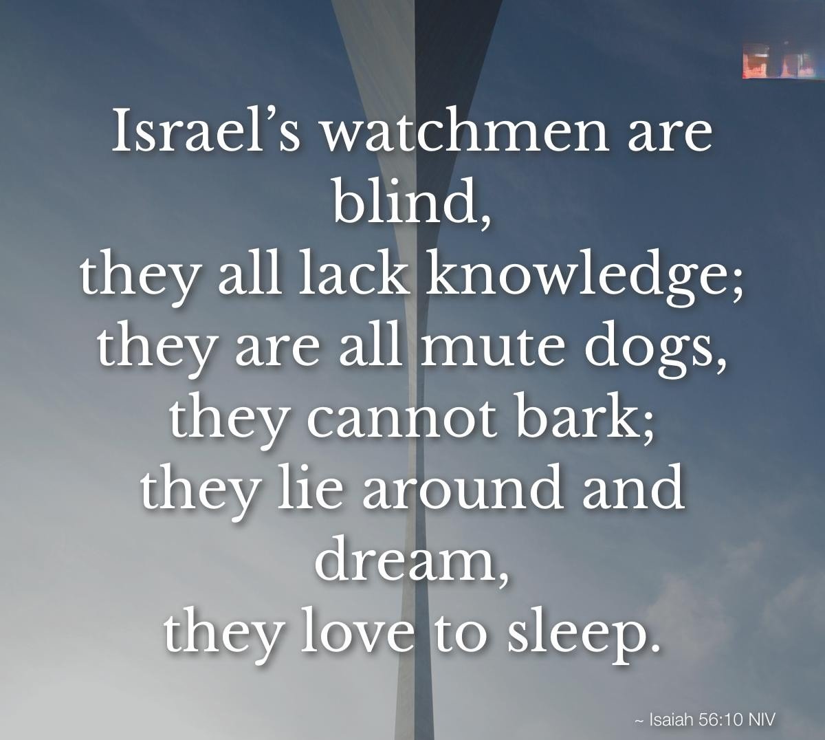 "His watchmen are blind; they are all ignorant, they are all dumb dogs, they cannot bark; dreaming, lying down, loving to slumber."