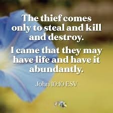The thief comes only to steal and kill and destroy. I came that they may have life and have it abundantly. (John 10:10, ESV)