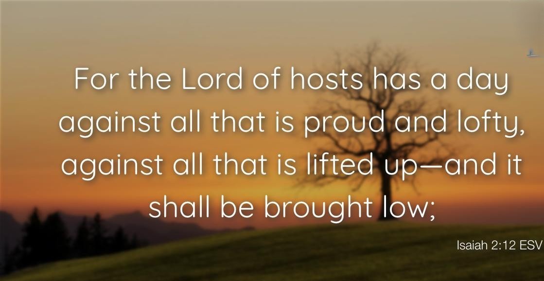 “The Lord Almighty has a day in store for all the proud and lofty, for all that is exalted (and they will be humbled).” (Isaiah 2:12)