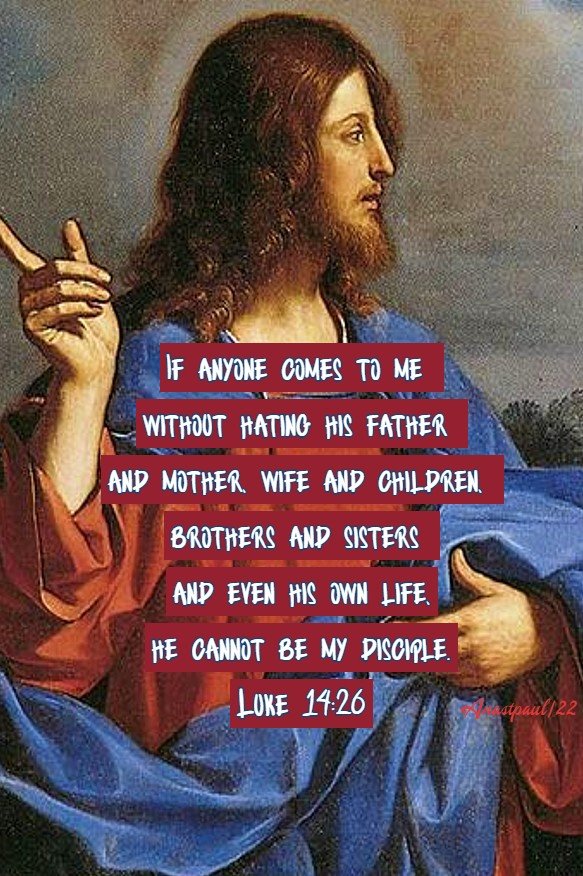 “If any man come to Me, and hate not his father, and mother, and wife, and children, and brethren, and sisters, yea, and his own life also, he cannot be My disciple.”