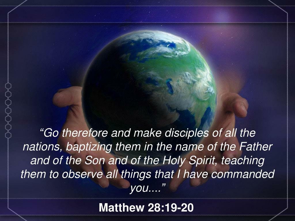 "Go therefore and make disciples of all nations, baptizing them in the name of the Father and of the Son and of the Holy Spirit, teaching them to observe all that I have commanded you." (Matthew 28:19-20)
