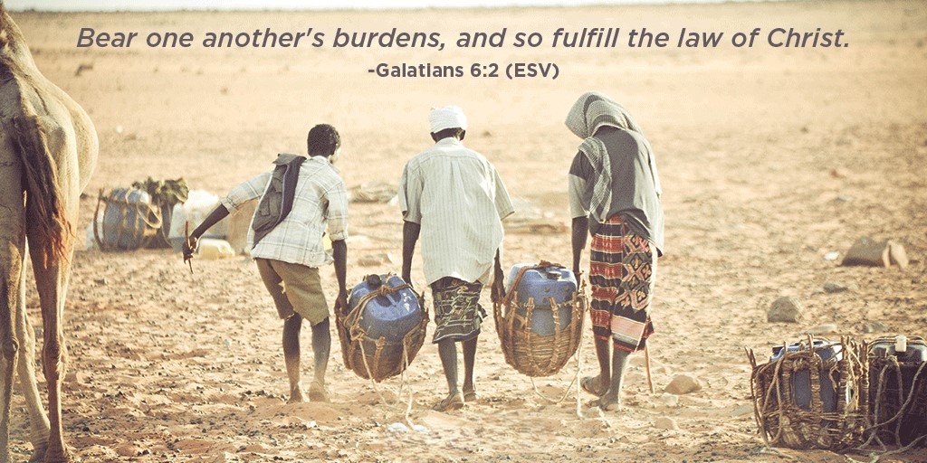 "Bear one another's burdens, and so fulfill the law of Christ." (Galatians 6:2, ESV)