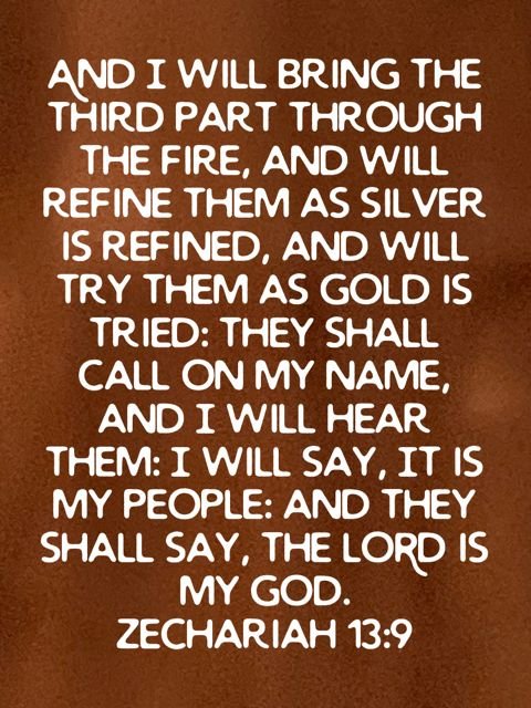 "And I will bring the third part through the fire, and will refine them as silver is refined, and will try them as gold is tried: they shall call on my name, and I will hear them: I will say, It is my people: and they shall say, The Lord is my God." – Zechariah 13:9 (KJV)
