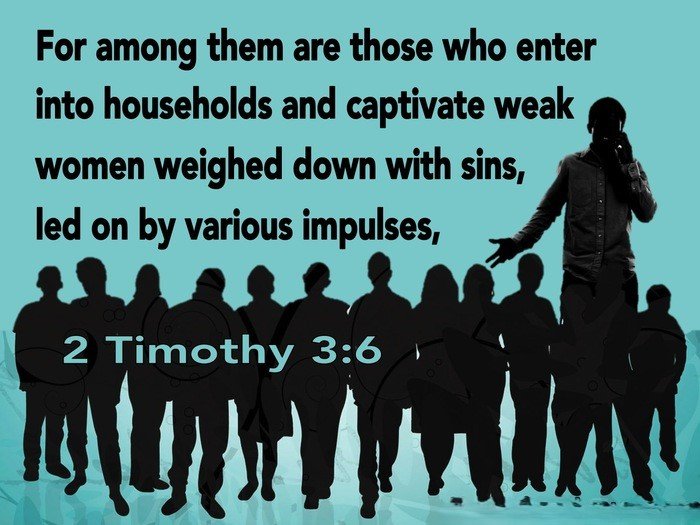 "For among them are those who creep into households and capture weak women, burdened with sins and led astray by various passions, always learning and never able to arrive at a knowledge of the truth."