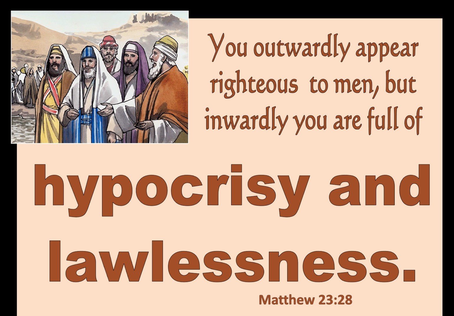 Matthew 23:28 - "Even so ye also outwardly appear righteous unto men, but within ye are full of hypocrisy and iniquity."