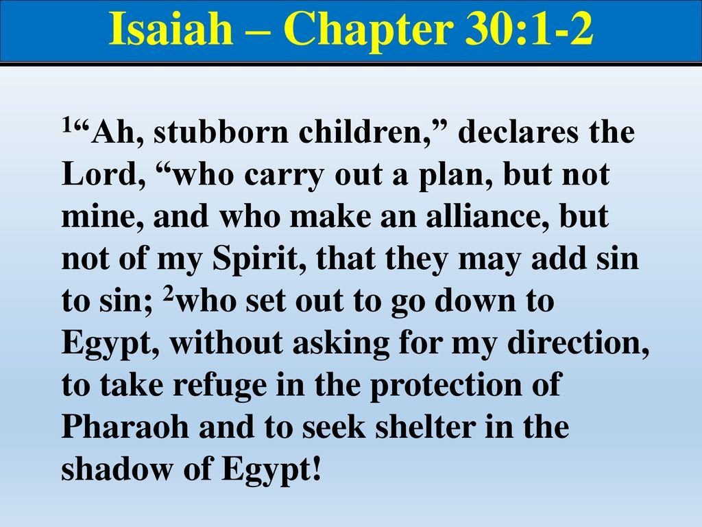 Isaiah 30:1 - "Woe to the rebellious children, saith the LORD, that take counsel, but not of me; and that cover with a covering, but not of my spirit, that they may add sin to sin."