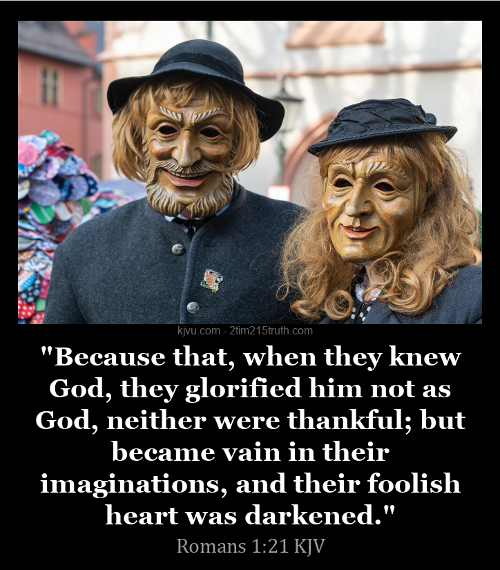"Because that, when they knew God, they glorified him not as God, neither were thankful; but became vain in their imaginations, and their foolish heart was darkened." (Romans 1:21)