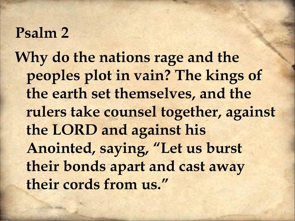 “Why do the nations rage, and the people plot a vain thing? The kings of the earth set themselves, and the rulers take counsel together, against the Lord and against His Anointed.” – Psalm 2:1–2 (NKJV)