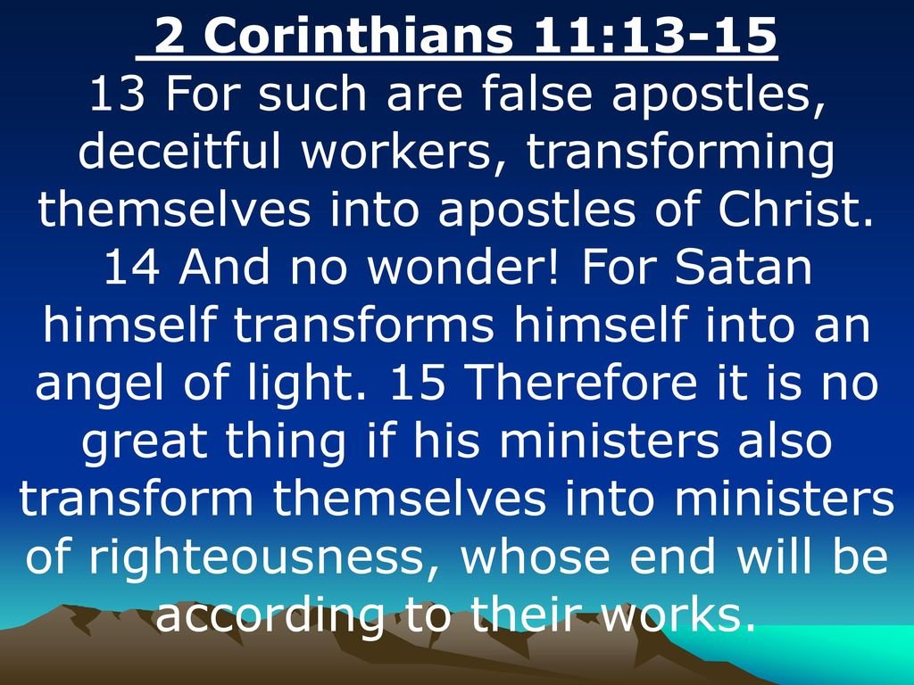 “For such are false apostles, deceitful workers, transforming themselves into apostles of Christ. And no wonder! For Satan himself transforms himself into an angel of light.” – 2 Corinthians 11:13–14 (NKJV)