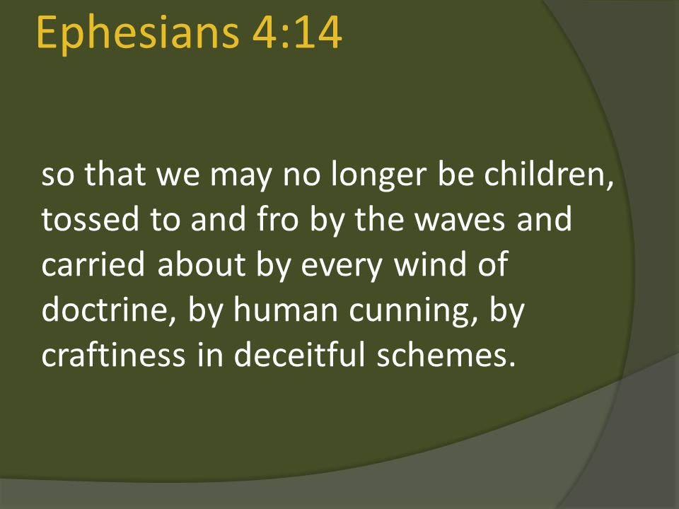 “That we should no longer be children, tossed to and fro and carried about with every wind of doctrine, by the trickery of men, in the cunning craftiness of deceitful plotting.” – Ephesians 4:14 (NKJV)