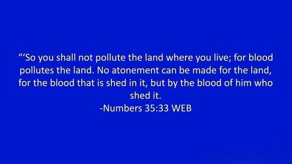 "So you shall not pollute the land in which you live, for blood pollutes the land, and no atonement can be made for the land for the blood that is shed on it." — Numbers 35:33