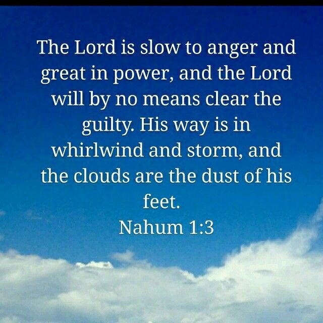 "The Lord is slow to anger but great in power; the Lord will not leave the guilty unpunished." — Nahum 1:3