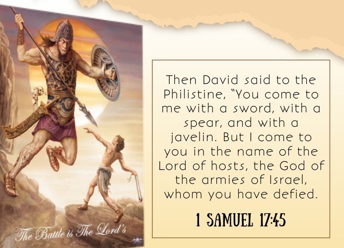 “You come against me with sword and spear and javelin, but I come against you in the name of the Lord Almighty, the God of the armies of Israel, whom you have defied.” (1 Samuel 17:45, NIV)