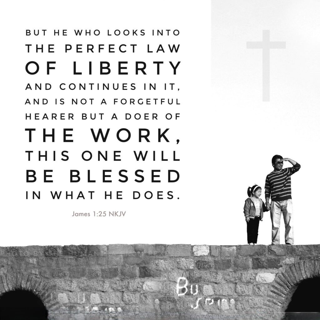 "But the one who looks into the perfect law of liberty and continues in it, and is not a forgetful hearer but a doer of the work, this one will be blessed in what he does." (James 1:25)