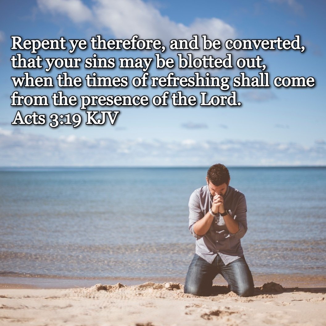 Acts 3:19 “Repent ye therefore, and be converted, that your sins may be blotted out, when the times of refreshing shall come from the presence of the Lord.”