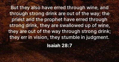 Isaiah 28:7 “But they also have erred through wine, and through strong drink are out of the way; the priest and the prophet have erred through strong drink, they are swallowed up of wine, they are out of the way through strong drink; they err in vision, they stumble in judgment.”