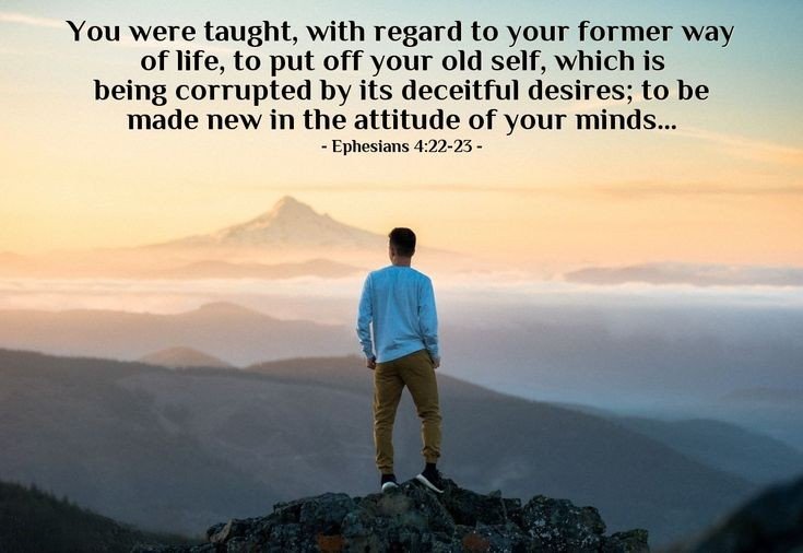 "You were taught, with regard to your former way of life, to put off your old self, which is being corrupted by its deceitful desires; to be made new in the attitude of your minds; and to put on the new self, created to be like God in true righteousness and holiness." - Ephesians 4:22-24