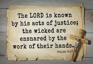 "The Lord is known by the judgment He executes; the wicked is snared in the work of his own hands." (Psalm 9:16)