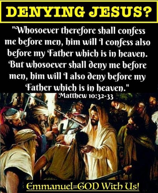 Matthew 10:32-33 - "Therefore whoever confesses Me before men, him I will also confess before My Father who is in heaven. But whoever denies Me before men, him I will also deny before My Father who is in heaven."